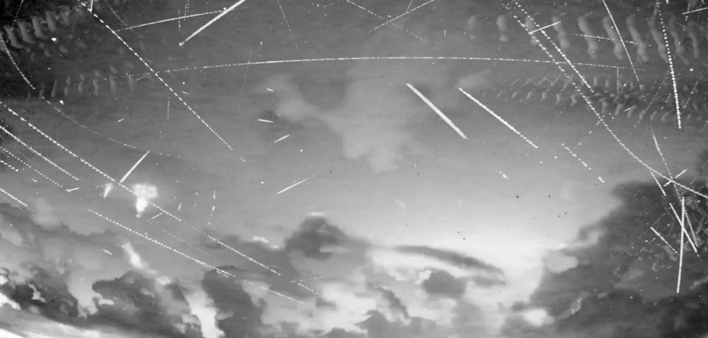 The cameras captured the re-entry of the SpaceX Falcon 9 fuel cannister, which ejected fuel high in the atmosphere, directly over Jylland on March 9th, 2025. The fuel froze, and as the cannister spun it resulted in a spiral.